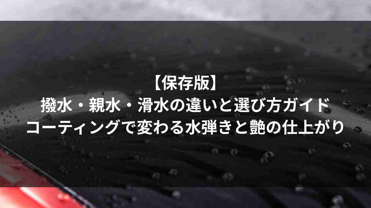 「コーティングをしたのに、思ったような水弾きや艶にならない…」そんな悩みの多くは、撥水・親水・滑水という“水弾き特性”の違いを知らないことに由来します。本記事では、それぞれの特徴・メリット/デメリットをわかりやすく比較し、あなたの保管環境・洗車頻度・好みに合わせてベストなタイプを自信を持って選べるようになることを目指します。